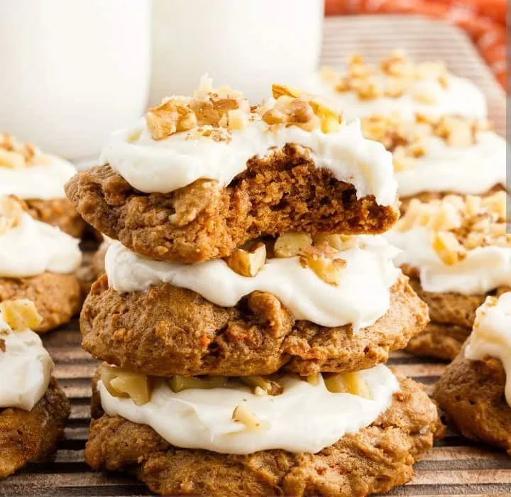 Carrot Cake Cookie – All the cozy flavor of homemade carrot cake baked into a soft, chewy cookie! Packed with freshly grated carrots, warm spices, and hints of vanilla, then topped with a smooth cream cheese glaze. It’s sweet, spiced, and perfectly moist—just like Grandma’s carrot cake, but in cookie form.